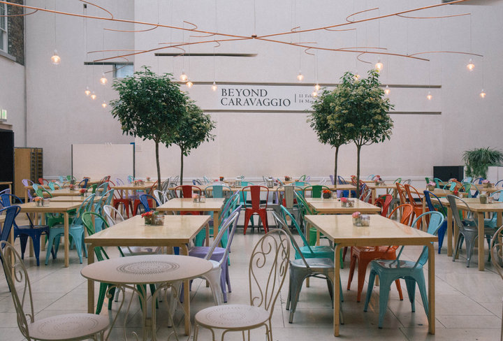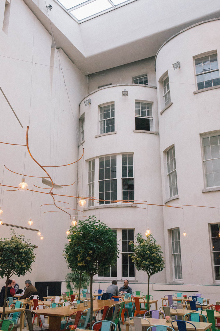特徴的なのは、大きな吹き抜け。シンプルな建物と、カラフルな家具の組み合わせに思わず気分が高揚してしまう空間になっています。 午前中は空いていることが多く、一杯のコーヒーとパンでお腹を満たし、幸せな気分のまま、ゆっくりと展示を楽しむのがおすすめです。