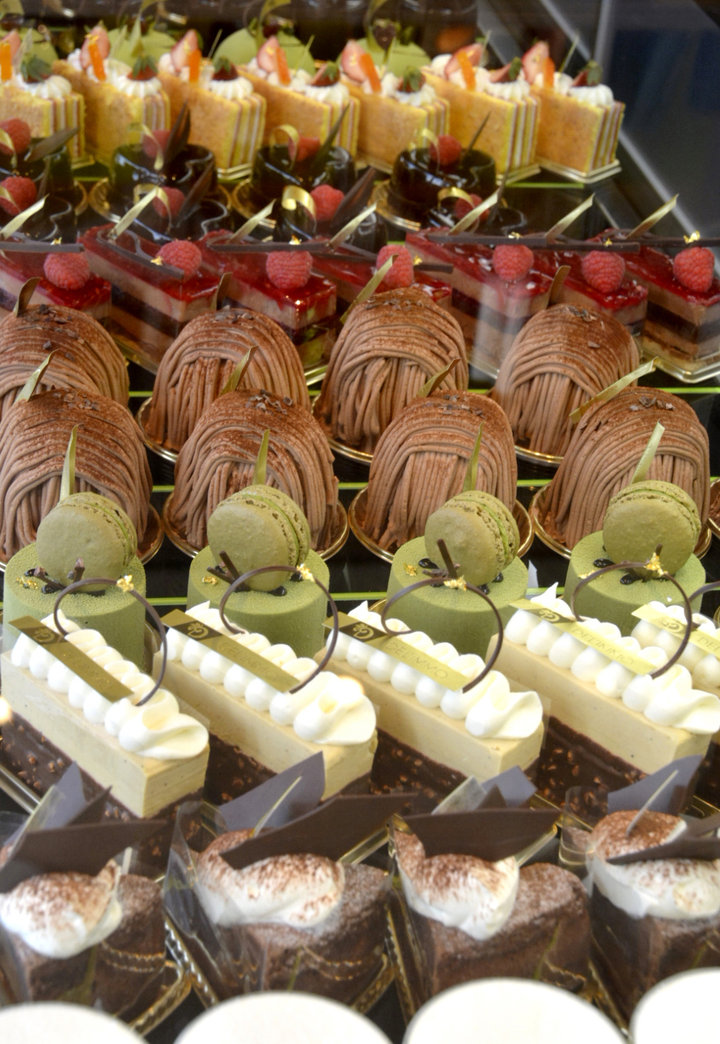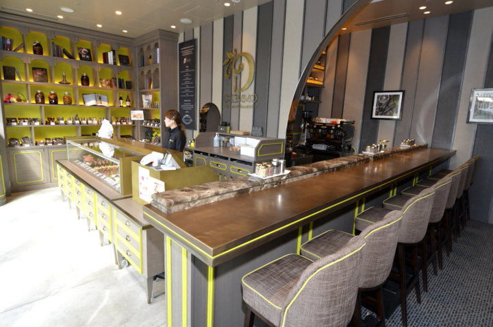店内に入ると思わず見入ってしまうのが、シックな空間に映える彩りあふれるショーケース。マカロンをのせたキュートなフォルムのものや旬の果物をふんだんにあしらったものなど、15~20種のプティガトー(ケーキ)が並んでいて、うっとりしてしまいます。 ここのシェフはベルギーの老舗ショコラトリー「デルレイ」本店などで修業を積んだ江口和明さん。ショコラティエがひと粒のショコラに趣向を凝らすように、「デリーモ」のプティガトーも当時の経験を生かしながら細部まで丁寧に仕上げています。