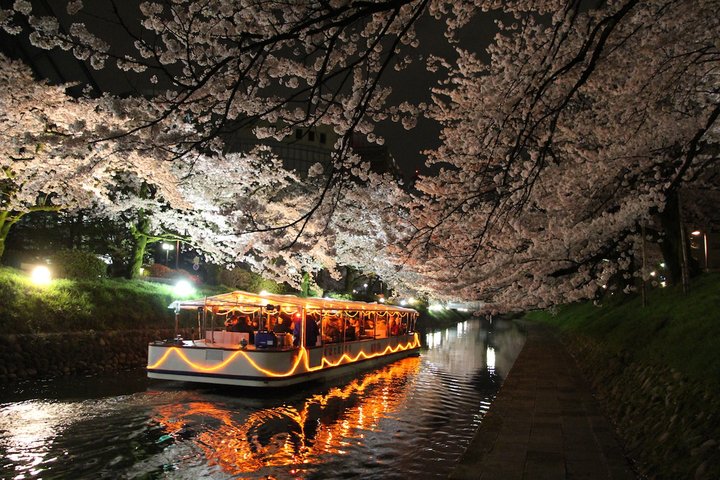 夜は辺りはライトアップされ、風情あふれる夜桜を堪能することも。 桜の時期以外でも四季折々に、季節を感じるクルーズを楽しむことができますよ。