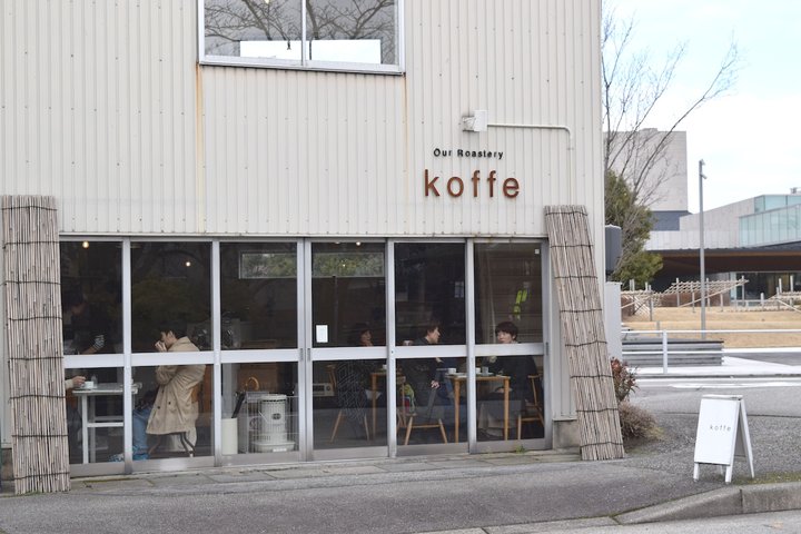桜並木をゆっくり散歩したあとは、珈琲店でほっと一息つきませんか? 「富山城址公園」から徒歩約10分。香り高いコーヒーの匂いが桜並木にまで漂う、スペシャルティコーヒーと焼き菓子のお店「koffe(コッフェ)」があります。 東京の「堀口珈琲」での焙煎修行ののち本場アメリカでの生活を経て開業した、山中さんご夫妻が営む珈琲店です。 お店の目の前に広がる桜並木を店内からも楽しめるとあって、連日多くのお客さんで賑わいます。コーヒーと焼き菓子(一部)は、テイクアウトもできるのが嬉しいところですね。