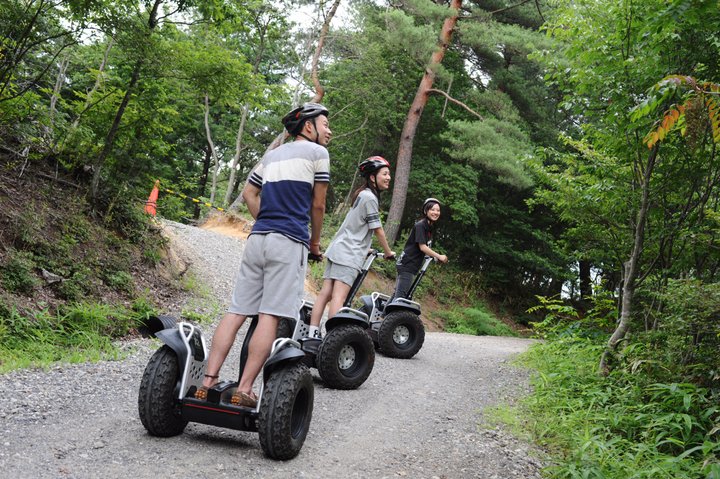 山添村にある森の地形や樹々を活かした、子どもから大人まで楽しめる豊富なアクティビティがある「冒険の森 in やまぞえ」。 利用条件を満たせば5歳から楽しめる「チャレンジコース」(2000円/5歳以上、身長110cm~、体重120kgまで)、難易度の高いアクティビティがそろう「アドベンチャーコース」(3500円/身長140cm~、体重120kgまで)、セグウェイで森の中を散策する「フォレスト セグウェイツアー」(3000円/16歳以上、体重45~120kg)の中から、好きなコースに挑戦することができます。