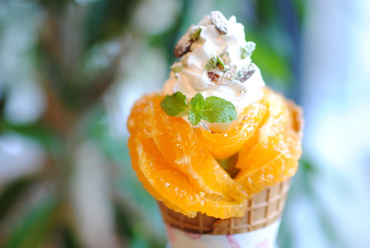 もうひとつの看板メニューが、花びらのように美しく盛られたパフェ。こちらも季節限定メニューがあり、現在はでこぽんを使った「でこぽんFROWERパフェ」が用意されています。 美しく盛られたでこぽんの下には、抹茶アイス、スポンジ、抹茶プリンなどが入り、しょうがを効かせたオレンジソースがちょっぴりアクセントを与えています。 このほかフルーツの味をダイレクトに味わえるフレッシュフルーツミックスジュースやホットフルーツティーなどドリンクも充実しているので、銀座で買い物の時などにぜひ立ち寄ってみてくださいね。