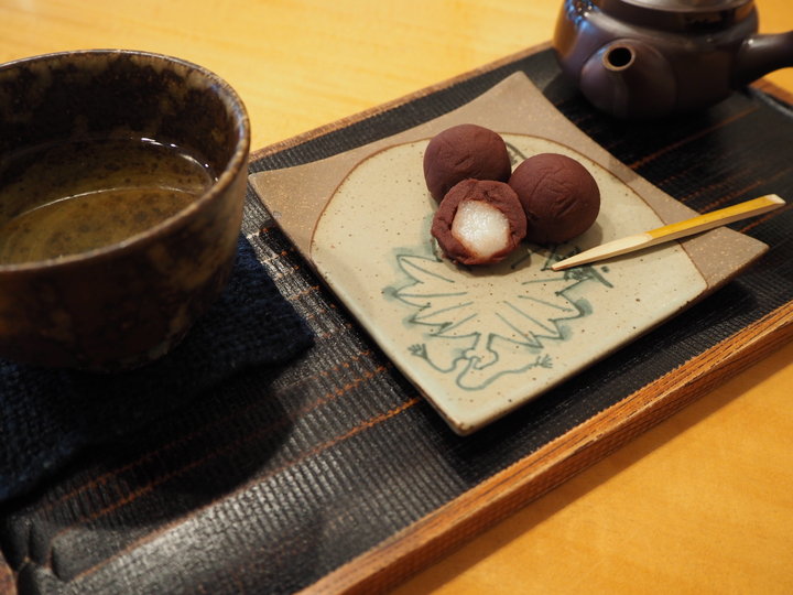 本店ではあんころ3個付きの「お煎茶セット」(370円)を味わえる