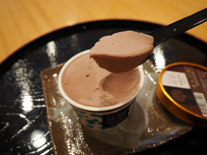 県内で圧倒的な人気を誇るジェラート店「マルガージェラート」と一年半以上の試行錯誤の末に完成したのが「あんころジェラート」(290円)です。 ジェラートは餡とミルクのバランスが絶妙。なかにはやわらかいお餅が入っています。なめらかな餡と濃厚なミルクは相性が抜群で、ひと口で幸せな気分になります。