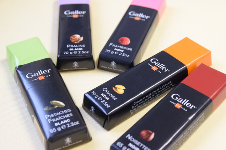 ベルギーと言えばもうひとつ思い浮かぶのはチョコレート。 数々の世界に名だたるチョコレートブランドがありますが、それらのクオリティの高いチョコレートをスーパーで買えてしまうのもベルギーならでは。 こちらはスーパーで売られている数あるチョコレートのひとつ。一代で王室御用達の称号を受けた、急成長&注目のブランド「ガレー」のチョコレートバーです。 シンプルながらもおしゃれなパッケージはフレーバーごとに色分けされており、ついつい何色かまとめ買いしたくなります。 チョコレートの中にはプラリネやフィリング(ジャムのようなソース)が入っていて、味・食べごたえともに文句なし。チョコレートの国ベルギーに行ってきた証として配るのにうってつけです。