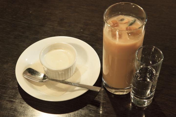 「ミニチーズケーキ」(108円)と「アイスチャイ」(411円)