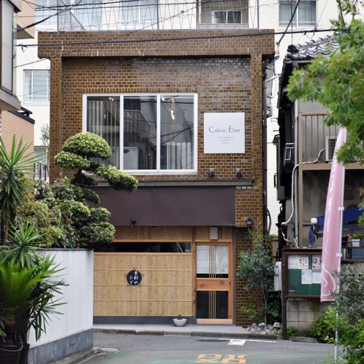 ※こちらのお店は、現在閉店しております。 東京・神楽坂の住宅街に、ひっそりと建つあめ色の建物。「Calme Élan(カルム・エラン)」は、オーダーを受けてからパティシエが目の前で作るフレッシュなスイーツが味わえる、対面式のスイーツカフェです。