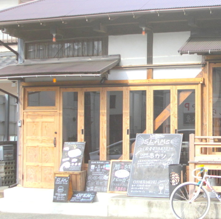 江ノ電の腰越駅から徒歩約1分。「SLAMs BURGER HOUSE(スラムス バーガーハウス)」は、のどかな雰囲気の商店街の一角にある、“つけダレ”で味わうハンバーガーが評判のお店です。気になるお味を確かめに、さっそくお店へ行ってみました。