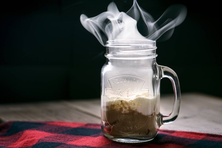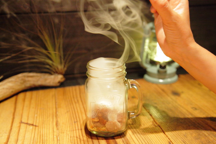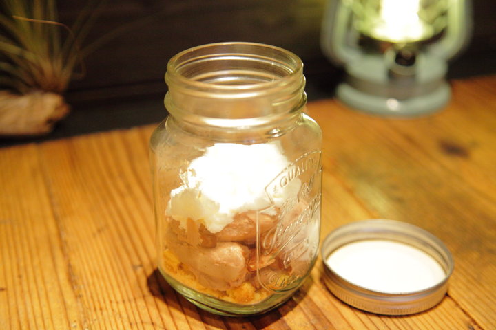 一方、「THE BANFF」のスモアは、本場のスモアがさらに進化。ガラスジャーの中は、下からビスケット、スモークナッツとチョコレートが入った自家製チョコムース、マシュマロの3層です。ジャーの蓋を開けると煙がモクモク。火でとろけたマシュマロをムースと絡めながら食べるボリュームいっぱいの絶品スイーツです。