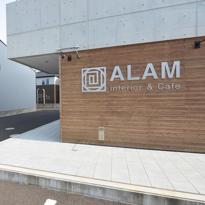 JR仙台駅から車で15分ほどの場所にある仙台市若林区六丁の目は、印刷所や倉庫が多く建ち並び、印刷工業団地と呼ばれるエリア。その一角、コンクリート打ちっぱなしのデザイナーズビルの1階に「ALAM Interior&Cafe」があります。ビルの斬新な外観とは対照的に、内装は木のぬくもりにあふれたナチュラルな空間です。 3フロアあるカフェスペースはそれぞれに趣が異なり、その日の気分やシチュエーションに合わせて好みの席を選ぶことができます。雑貨コーナーを併設した1階は、大きな窓から太陽光が降り注ぐ明るい空間。黄色のチェアと白いテーブルがポップな雰囲気です。中2階は、モスグリーンのソファに木とガラスのテーブルを合わせた、ゆったりくつろげる空間。2人席が多い半地下は、静かで落ち着いた雰囲気で、ゆっくり読書ができそうです。