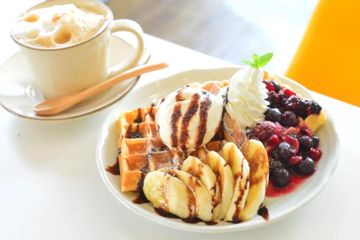 バナナとベリーがたっぷりの「ミックスワッフル」(750円)