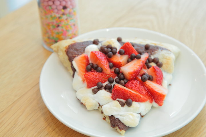 どの組み合わせがよいか悩んだら、メニュー表にあるおすすめピザを選ぶこともできます。中でも人気なのは、ダークチョコをベースに、倍の分量のいちごとシリアルチョコをたっぷりのせた「ダブルストロベリーダーク」(680円)。いちごとチョコの相性の良さは折り紙付き。トッピングの中でもいちごが一番人気だそう。