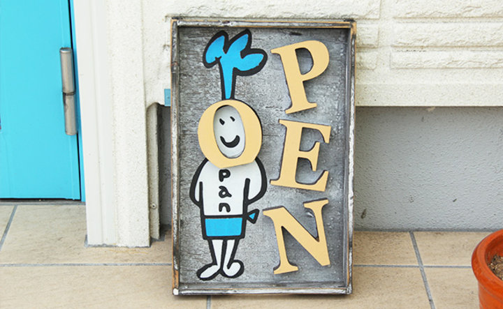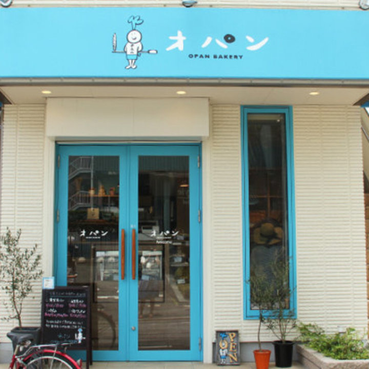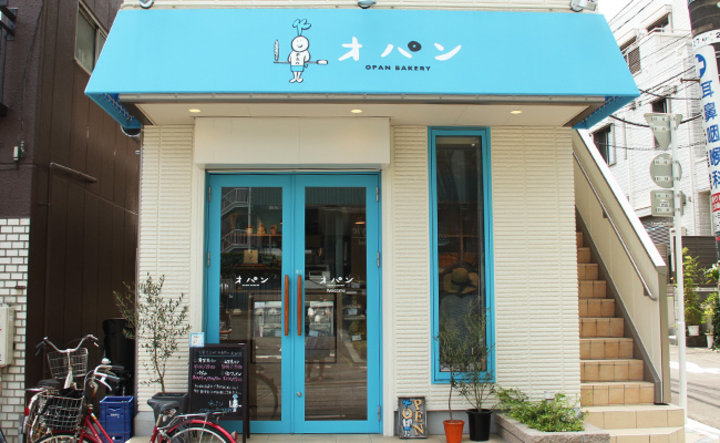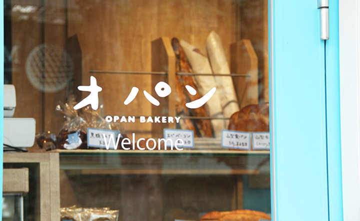 入口ではかわいいオパンくんがお出迎え。 ちょっと気になるこの店名は、「おすし」や「おそば」のようにパンにも「お」を付けて丁寧に表現してみたことが由来だそうです。