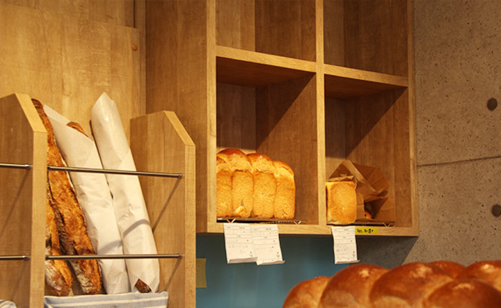 オパンの食パンはよく見かけるものよりちょっと小さめ。それはこの店内に並んだ時にちょうどよく、愛着がわくようなサイズにしたからだそうです。ショーウィンドウの奥にお取置きされているパンたちもインテリアのようなかわいらしさがあります。