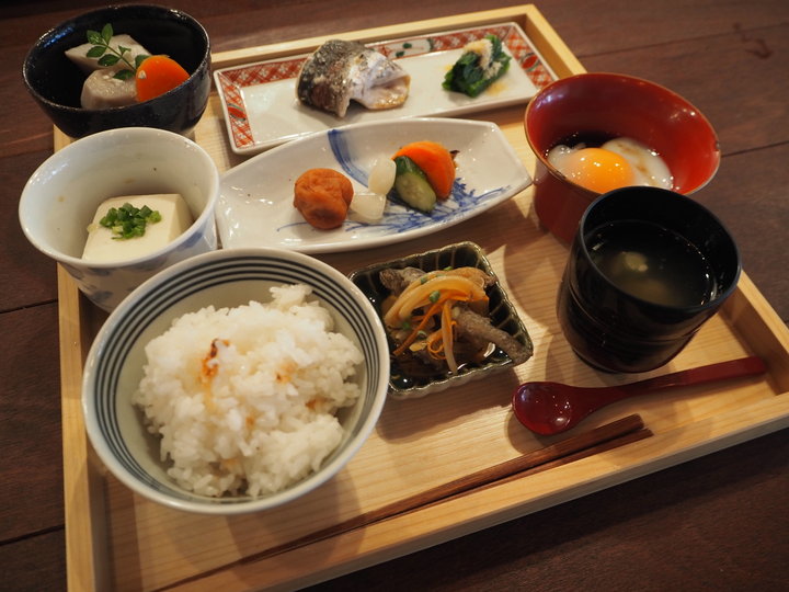1階のダイニング「a.k.a.(アーカ)」とコーヒースタンド「HUM&Go#(ハムアンドゴー)」は、地元女性に人気の有名店です。 「a.k.a.」の30食予約限定の「金澤朝御膳」(1600円)は、地元農家直送の野菜や近江町市場の鮮魚を使い、煮物やおひたしなど手の込んだ料理が10品も並びます。 お米は石川産コシヒカリ、調味料は金沢の老舗・ヤマト醤油味噌にこだわり、金沢のおいしさが詰まっています。わざわざこの朝ごはんを目当てに来る人が多いのも納得です。