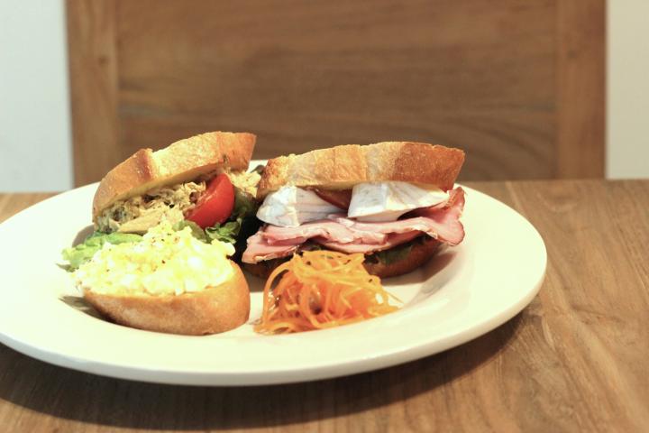 ボリューム満点の「クノップゥサンド」(800円)。中身の具材は日替わり