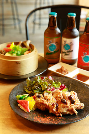 発酵食品のひとつ、クラフトビールは20種類以上用意。生ビールも地元産を含め3種類あります。塩麹に漬けこんだ柔らかな食感が魅力の「信州産ハーブ鶏のグリル しょうゆ豆ソース」など、ビールと相性抜群の料理とともにどうぞ。