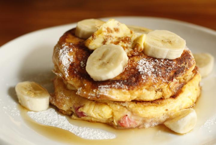 さらにこちらのお店でぜひ注文したいのが「ミックスベリーとバナナのパンケーキ」(1000円)です。オーナーが行列の絶えないパンケーキの名店で働いていた経験があり、そのレシピからさらにおいしくアレンジして作られています。食後のデザートとして食べて欲しいという思いから、メレンゲが多めの軽やかな味わいです。ブルーベリーやクランベリーが練りこまれたふわふわの生地に、アーモンドとキャラメルを和えたプラリネバターが溶けて豊かな風味が広がります。
