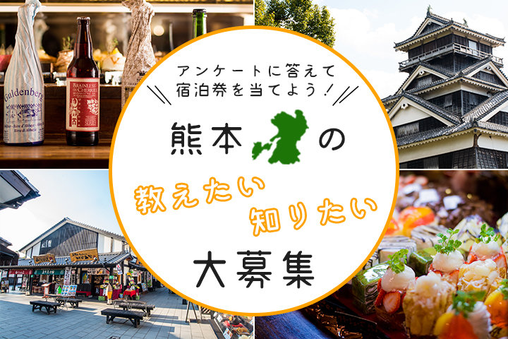 熊本市に住んでいる皆さまが行きつけにしているお店や思い出のあるお店、大切にしたいお店など、住んでいるからこそわかる地元の魅力を教えてください。 同時に熊本にいつか旅行してみたい方からも、地元の人から教えてほしい熊本の魅力を募集します。 いただいた声をもとにことりっぷ編集部より熊本市の魅力を記事化してお届けします。 アンケートに回答して頂いた方の中から抽選で、「熊本市宿泊券(提供:熊本市ホテル連絡協議会)」を 8名様に、「熊本和牛あか牛ギフト」を3名様に、「お好きなことりっぷを1冊」を 5名様にプレゼント! 皆様のご応募をお待ちしております。 応募期間:2017年8月7日~8月21日