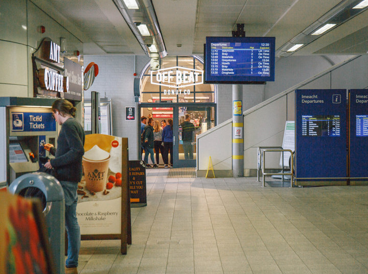 ダブリンとアイルランド内の街をつなぐDARTという電車があります。ダブリン市内にあるPearse StationというDARTの駅にあるのが「Off Beat Donut」(オフ・ビート・ドーナツ)。 これから電車でどこかへ向かう人たちが出発の前にドーナツを購入されてゆく光景が印象的なドーナツ屋さんです。 店員さんも優しく、どれを頼もうか悩んでしまった初めての入店時にはそれぞれのドーナツについて丁寧に説明してくれたのが印象的な思い出。