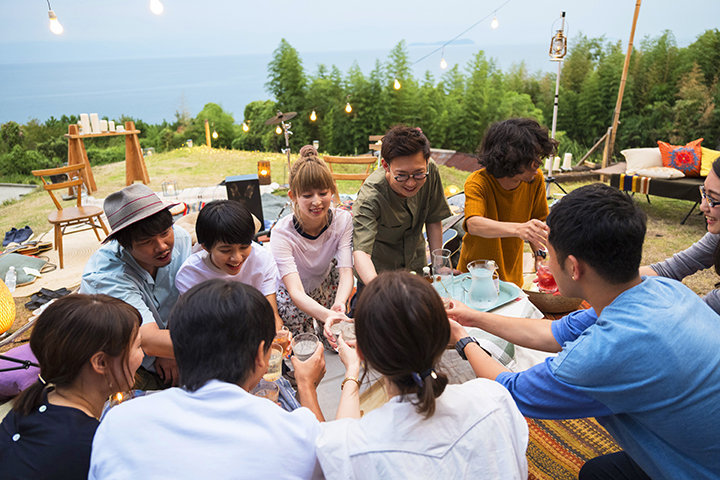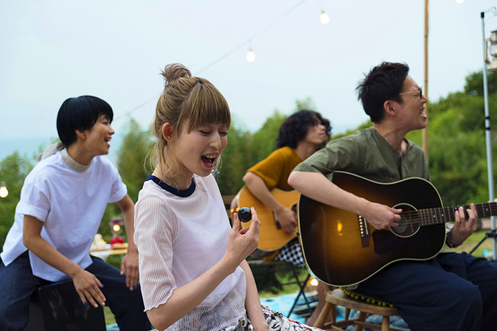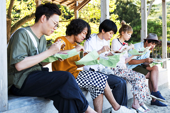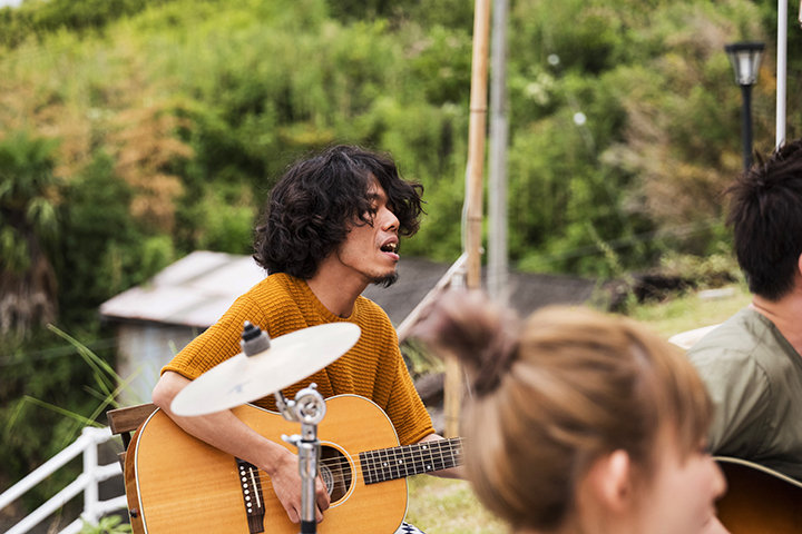 裸足で腰かけ、終始リラックスした表情のメンバー。虫の音と海風を感じながら聴く、あたたかい音と歌声。客席からはハンドクラップが起き、1曲演奏が終わるごとにメンバーとファンが談笑するアットホームなライブ。 ホストや地元の人々のやさしさにふれる交流、居心地のいいリスティングでの心安らぐひととき、目にした瀬戸内のおだやかな風景…。この旅を体験して奏でられた音は、やさしく多幸感にあふれていました。