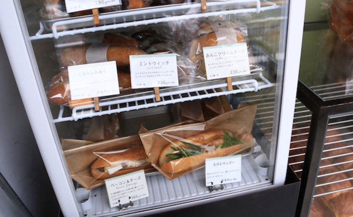ガラスケース横に置かれたサンドイッチのコーナーに視線を移すと、そちらも珍しい組み合わせがたくさん!中でも「えびとマンゴー」のサンドイッチは、取材に訪れた際もすぐに売り切れてしまっていました。見つけたらすかさず購入した方がいいかもしれませんね。