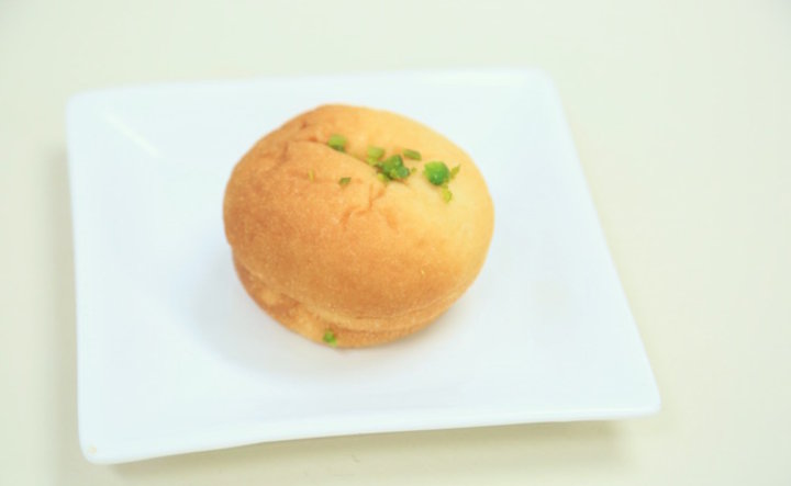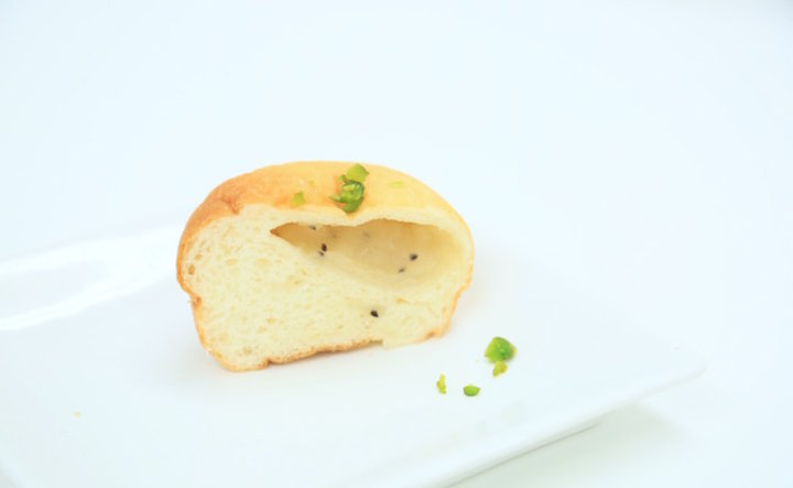 コロンとまんまるの見た目がかわいい「キウイ」。切ってみると、パンがとっても柔らかい!ふわふわの食感のパンに、白あんとキウイジャムを混ぜたフィリングが包まれています。ほどよい白あんの甘さと、キウイの甘酸っぱさがマッチして、意外にも思える組み合わせが絶妙なマリアージュを生み出していることに、びっくりしてしまいました。想像以上にキウイの味がしっかりしているので、爽やかな味わいを楽しめ、まさに夏にぴったり。上に彩りを添えているピスタチオが、見た目にも味にも食感にもいいアクセントをつけています。