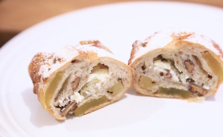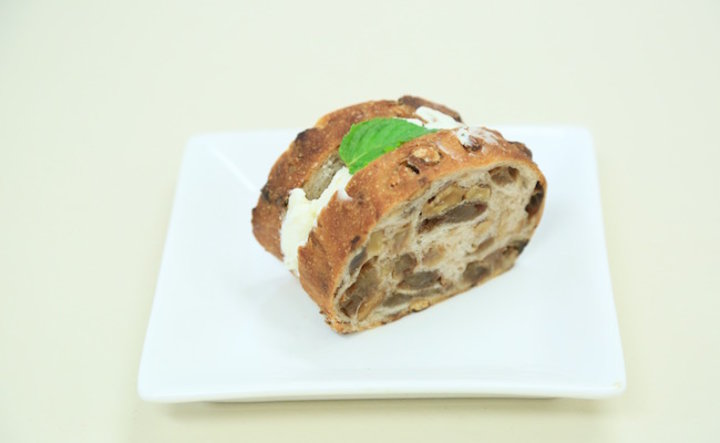 「くるみとみるく」は、かわいくておいしいということで、下山さんおすすめのメニュー。実は逆から読んでも「くるみとみるく」。ネーミングまでキュートなんです。 少し噛みごたえのあるクルミ入りのパンに、濃厚なミルククリームがたっぷりサンドされています。クルミの味がしっかりしていて、程よい塩気も感じられ飽きないおいしさです。これからますます暑くなる季節には、キンキンに冷やして食べるのもおいしそう!