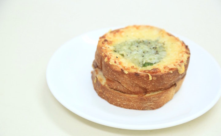 上から見るとまんまるのクロックムッシュ。横からみるとその厚さが分かります。パンに挟まれたベーコンも厚切りでびっくり!ベーコンがゴロゴロと入っており、ボリューム満点で食べ応えがあります。しそとチーズという、一見意外にも思える組み合わせですが、ひと口食べると相性抜群! クロックムッシュというと朝ごはんのイメージがありますが、これはビールや白ワインなどのお酒とも合いそうです。