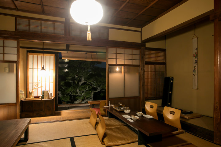 近鉄奈良駅から北へ10分ほど歩いたところにある「松籟~まつのおと~」。 築80年という元商家をリノベーションした店は、オーナーである店主が大学時代に建築学を学んだことをきっかけに、自らが手がけたという空間です。