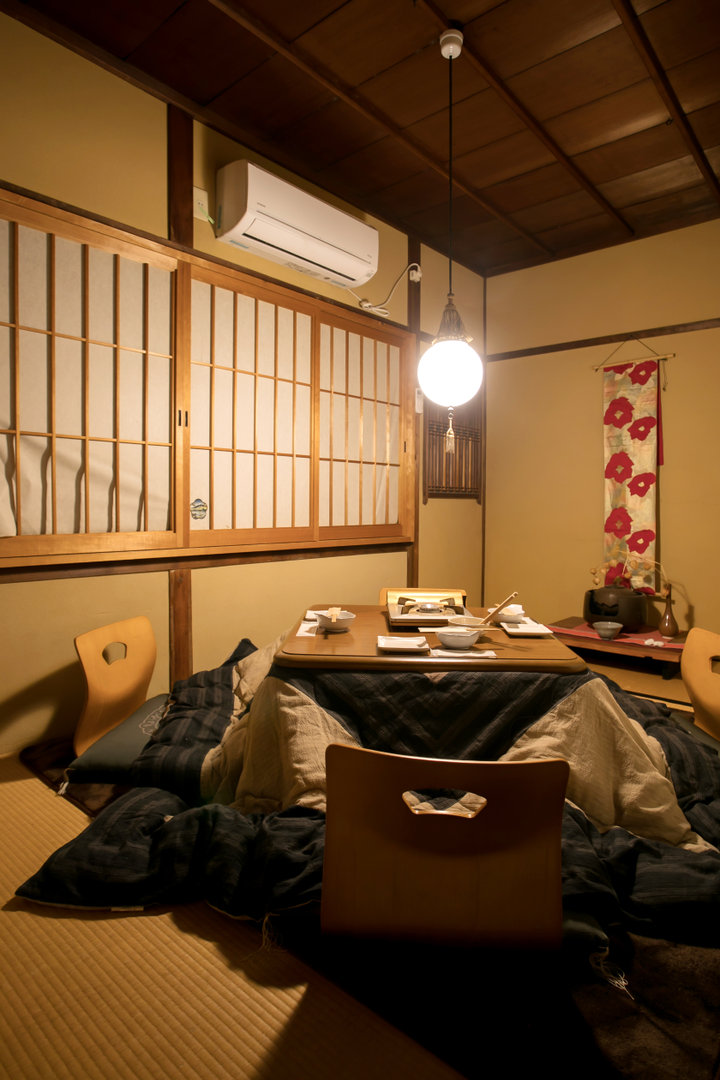 床の間など日本家屋らしさを残しながら、夜になればライトアップされる松の木を見ながらゆったりできる和モダンな雰囲気。テーブルが低めにしているのは、鍋の中が見えるようにという店主の配慮だそう。グツグツ煮込むのをみれば、おいしさが増すといいます。