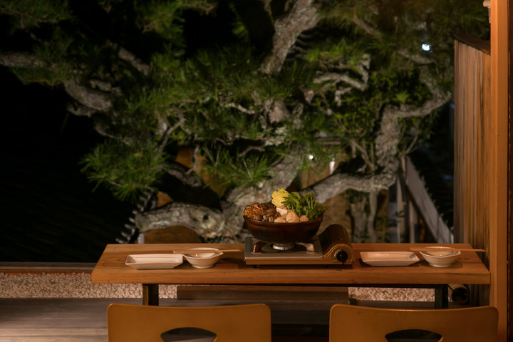 奈良の県庁前通りより北側。奈良女子大学があることで知られる「きたまち」で見つけた「松籟~まつのおと~(しょうらい)」は、圧倒される松の大木が中庭にある古民家レストラン。地元ならではの食材を使い、飛鳥鍋(牛乳鍋)など店主自らアレンジした滋味深い料理を中心に、奈良のジビエ料理も味わえる一軒です。