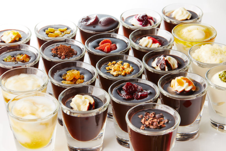 チョコレートソースの種類はなんと16種類。 ベーシックなチョコレートはもちろん、リキュールを混ぜてナッツやドライフルーツをトッピングしたソースや、チョコレートソースの上にクリームと色鮮やかなソースをのせた三層仕立てのソースなど、何度も通いたくなる豊富なラインナップがそろいます。