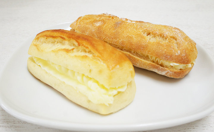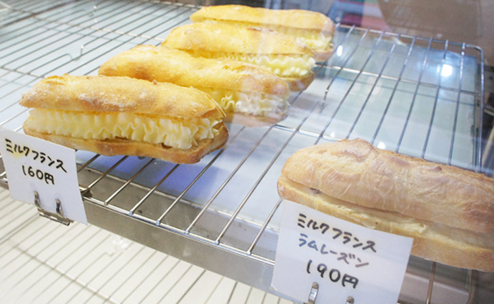 もう一方の「ミルクフランス」を食べると、「こんなに印象が違うの!」とびっくり!香ばしいバゲットの味と歯ごたえが、クリームの印象も変えてしまうとは!歯ごたえと香ばしさで少し大人の味わいに。さらに大人味のラムレーズン入りもあります。食べ比べしてみるのも楽しいですよ。