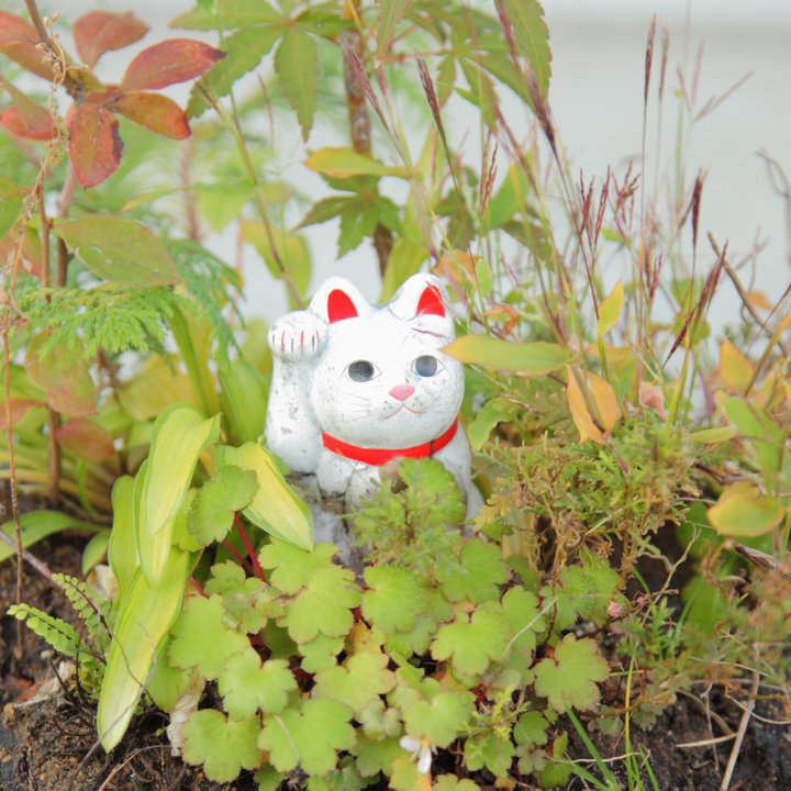 「まほろ堂 蒼月(まほろどう そうげつ)」は、世田谷線宮の坂駅から徒歩約3分。線路沿いの道にあり、のんびりと走る電車の窓からも見つけることができます。 2015年春にオープンしたお店は、シンプルで洗練された雰囲気。居心地のよいカフェスペースの窓辺では、ちょこんと座った招き猫がおいでおいでと手招きしています。