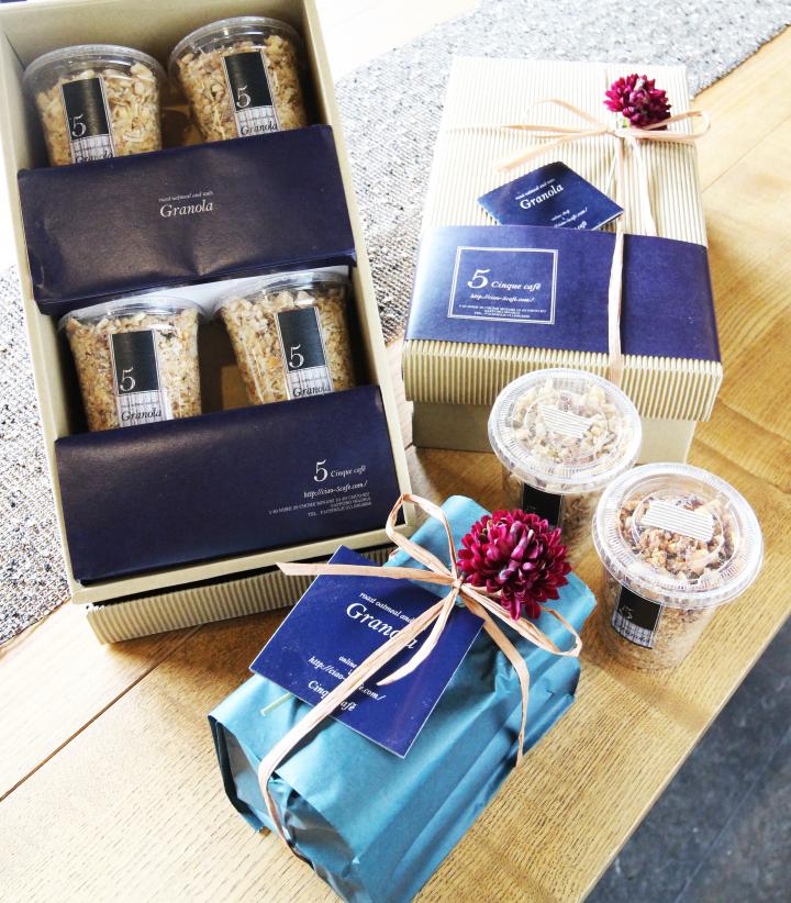 アップルパイのトッピングとして存在感があったグラノーラ。こちらのテイクアウトも可能です。一つひとつ、素材や製法にこだわった手づくりのグラノーラは、プレーンやキャラメルなど6種の味があります。朝食やおやつにいただくのはもちろん、サラダのトッピングにもおすすめだそう。また、好みの味を組み合わせて作るギフトセットもあるので、ちょっとした贈り物にぴったりですね! この秋、「チンクェカフェ」でこだわりのアップルパイをいただき、グラノーラをおみやげにしてみてはいかがでしょうか。