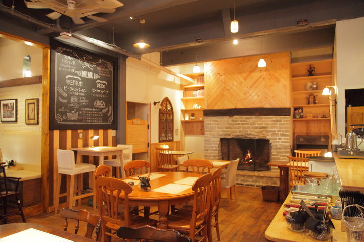 「エントツ ビストロ & カフェ」は京王線下高井戸駅、または、桜上水駅から歩いて10分ほど。甲州街道沿いにあり、2階建ての建物の屋根に突き出た煙突からは煙がうっすらと立ちのぼっています。 木のぬくもりが感じられる店内はアンティーク家具や雑貨が飾られ、ゆったりとしたカントリー調の空間。奥の壁にはれんがの暖炉があり、10月から3月くらいまでの寒い時期に火が入れられます。