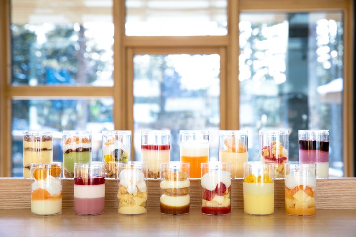 なかでもおすすめは、「クープ」と名付けたオリジナルスイーツが味わえるスイーツショップsweets「ゆきの」。円筒状の小さな器の中には、メロンやイチゴなどのフルーツとクリームがたっぷり。思わず写真を撮りたくなるような見た目のかわいらしさがあり、いくつか食べ比べするにはちょうど良いサイズ感も嬉しいですね。 「北海道を代表する赤肉メロンをソースに練り込み、ふわふわのスポンジと生クリームを挟み、濃厚なクリームで閉じ込めた『メロンショートケーキ』や、フレッシュな苺、ふわふわのスポンジ、濃厚なクリームに甘酸っぱい苺のソースをアクセントに加えたショートケーキ『苺ショートケーキ』などが人気です」とマネージャーの神宮幸穂さん。テイクアウトもできるので、ショップの外のデッキにあるファイヤープレイスやホテルの部屋など、思い思いの場所で味わって。