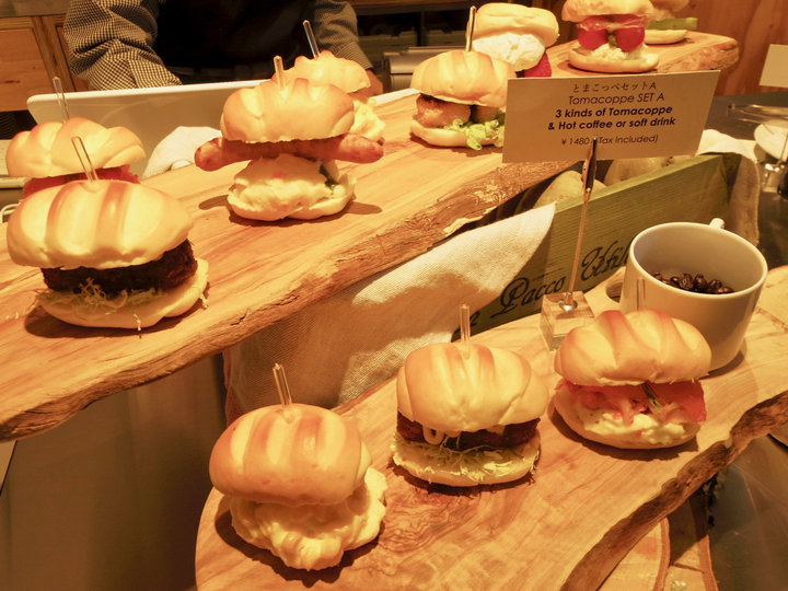 お隣のショップcafe&bar「つきの」では、サーモンやメンチカツ、ポテトサラダなど道内ならではの素材を使った「とまこっぺ」を販売しています。お好みで選んだ3種類の「とまこっぺ」とドリンクのセットメニュー(1480円)もおすすめ。ドリンクメニューも揃い、味わい深いミルクに、コクのあるバターが入った「バターミルクラテ」で体も温まります。