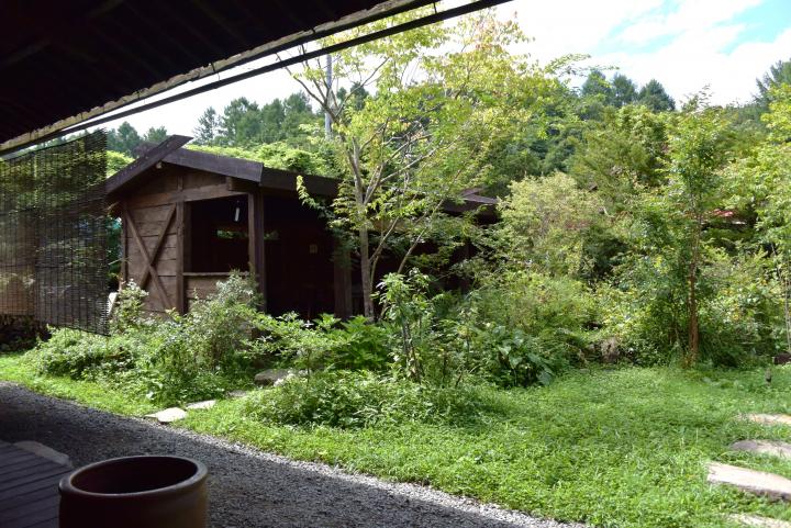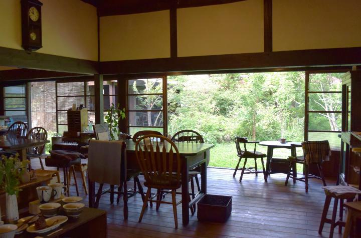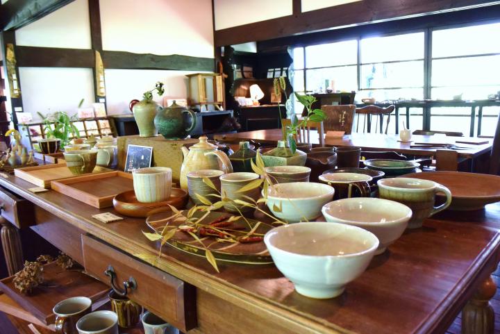 ギャラリーとカフェの「陶仙房 須栗平」は、長野県のJR茅野駅からバスで約30分、「須栗平」のバス停から3分のところにあります。風格ある古民家は、陶芸家であるスタッフ自身が改築しただけあり、廃材や古家具をうまく取り入れ、趣はそのままにモダンな建物に生まれ変わっていました。周囲には木々が生い茂り、室内では柱時計の音だけが響く、とても静かな環境です。