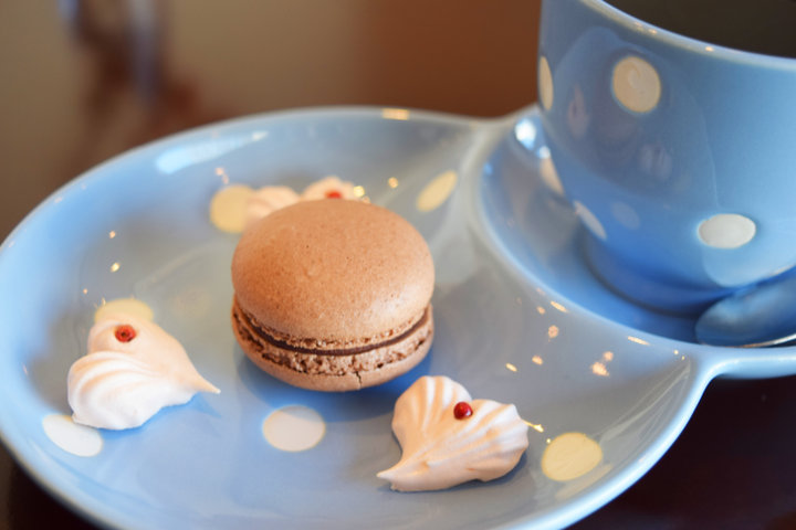 期間限定の「マカロンルビーセット」(850円)。フランボワーズの濃厚な甘みと華やかな香りに癒される