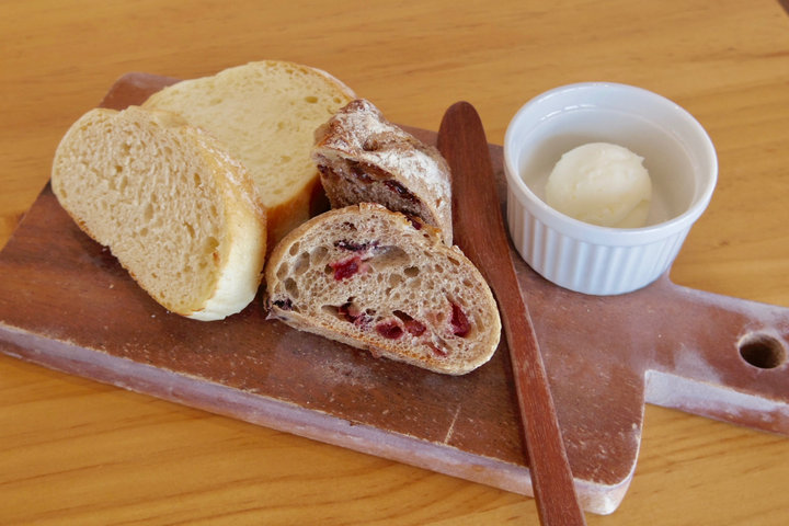 ジャージーミルクのバターが付いたパン盛り合わせ