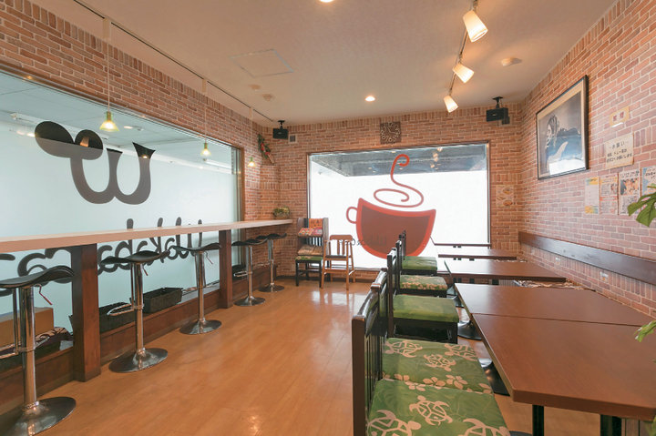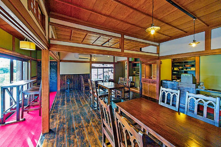 国生みの聖地が伝わる「おのころ島神社」へも近い場所に位置する「ふくカフェ」。築100年を超える古民家を改装した、ポップな感覚とどこか懐かしい雰囲気が同居するカフェです。