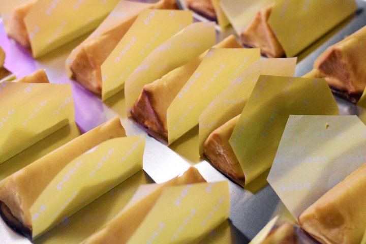 スイートポテトパイには国産の厳選したさつまいもを使用し、パイ生地の上にポテトクリームがたっぷり入ったポテトペーストをのせてベイクすることで、“さくっ”“ほくほく”“とろり”という3つの食感を実現しいます。 また、専用の三角柱の型に入れてひとつひとつ丁寧に焼きあげ、食べた瞬間に一度に口の中で3つの食感が楽しめる、今までにない新食感のスイートポテトパイに仕上がっています。