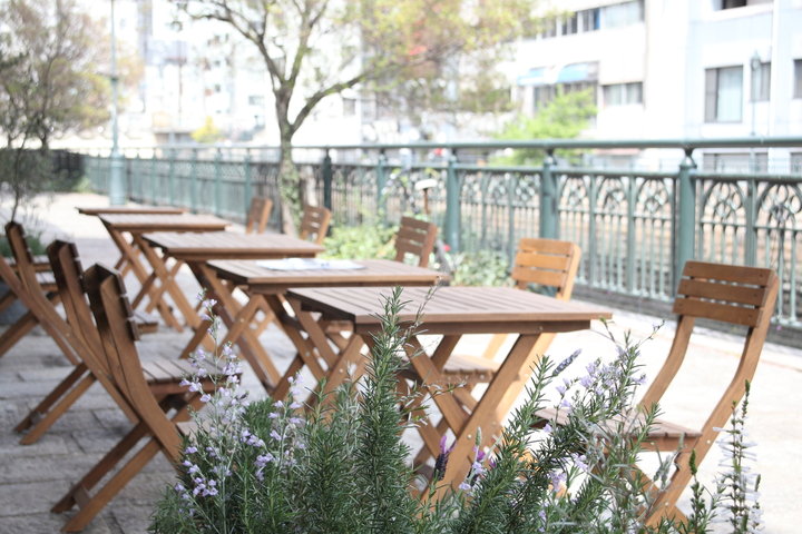 エレガントなインテリアがモンシェールの特徴でしたが、こちらのお店はシンプルでカジュアルなテイスト。昔ながらの建物も残る堀川沿いにお店があり、川に面したテラス席も。街歩きの途中で気軽に立ち寄りたくなる雰囲気です。