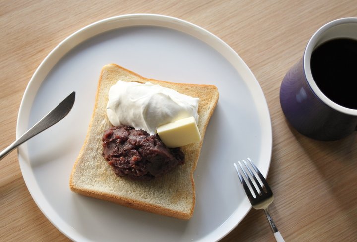 さらに名古屋らしい限定メニューが、たっぷりの堂島ロールのクリームと小倉、発酵バターをのせたトースト。甘さ控えめのクリームが、甘い小倉やバターの塩気ととても相性がよく、贅沢な気分になれますよ。