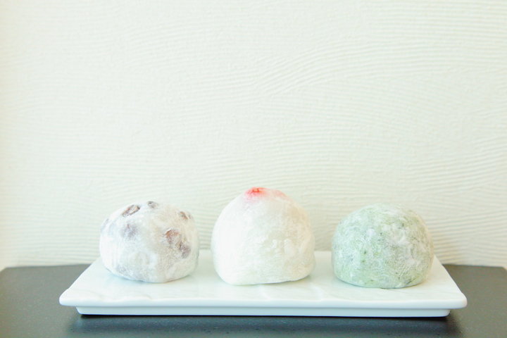 左から「豆大福」(194円)、季節限定の「苺大福」(388円)、「草大福」(216円)