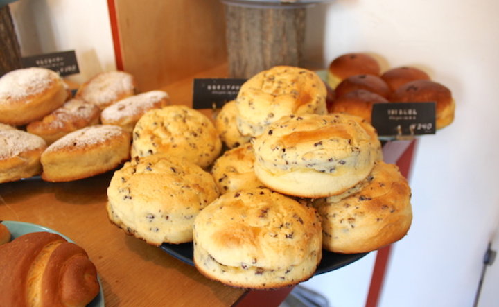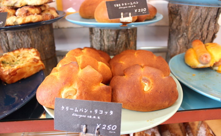 店内に並ぶ約40種類のパンは、メロンパンやクリームパンなどオーソドックスなものが多いのですが、パンの名前を表示したタグをじっくり見てみれば、「カカオニブメロン」「クリームパン+リコッタ」など、他のパン屋ではなかなかお目にかかれない食材が、日本風パンにアレンジされていることに気がつきます。