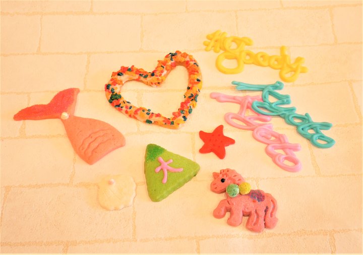 どれを選べばいいか迷った人は、スタッフおすすめの組み合わせを参考にできます。一番人気は、大きなハート型とユニコーンの2つのクッキーが付いた「ファンタジー」。ほかにも、京都らしい大文字山のクッキーが付いた「KYOTO」も観光の記念にピッタリです。
