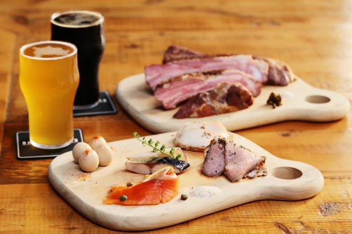 2015年に川崎にオープンしたホテル&ホステル「ON THE MARKS(オン ザ マークス)」。1Fにはダイニング&バーがあり、宿泊者以外もいつでも訪れることができます。朝はオリジナルカレー、ランチとディナーではカツカレーやロースカツサンド、スモークなどを提供。古くからコリアタウンがあることから川崎の食文化の柱のひとつである肉を堪能できます。また、京都のクラフトビール醸造所「京都醸造」のビールの神奈川初の常設店舗となるなど、クラフトビールも充実しています。